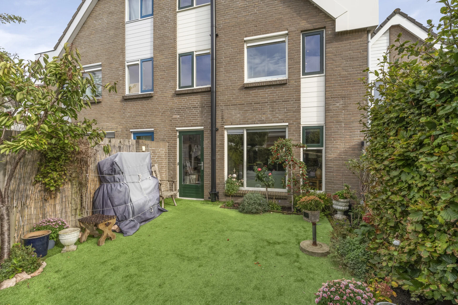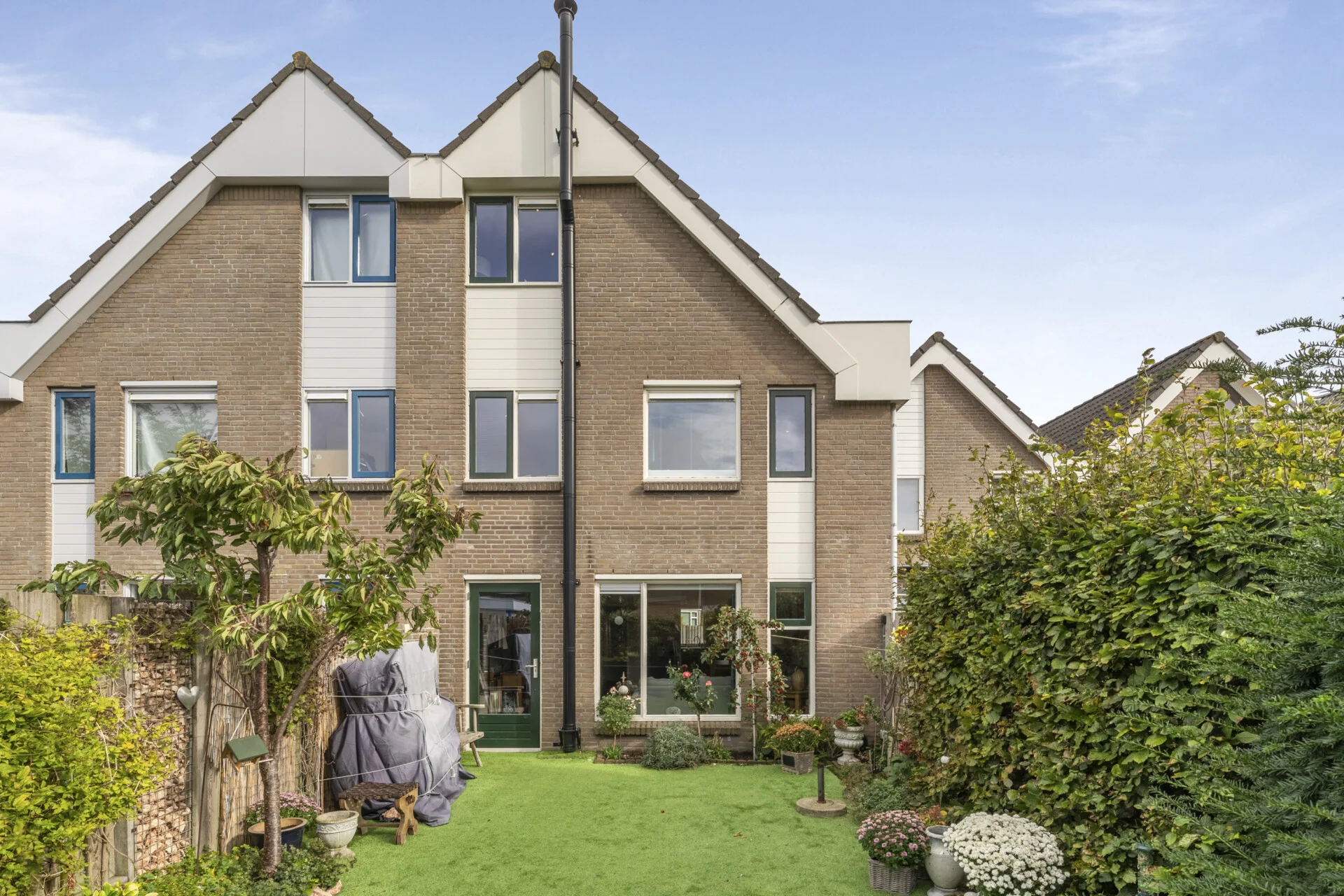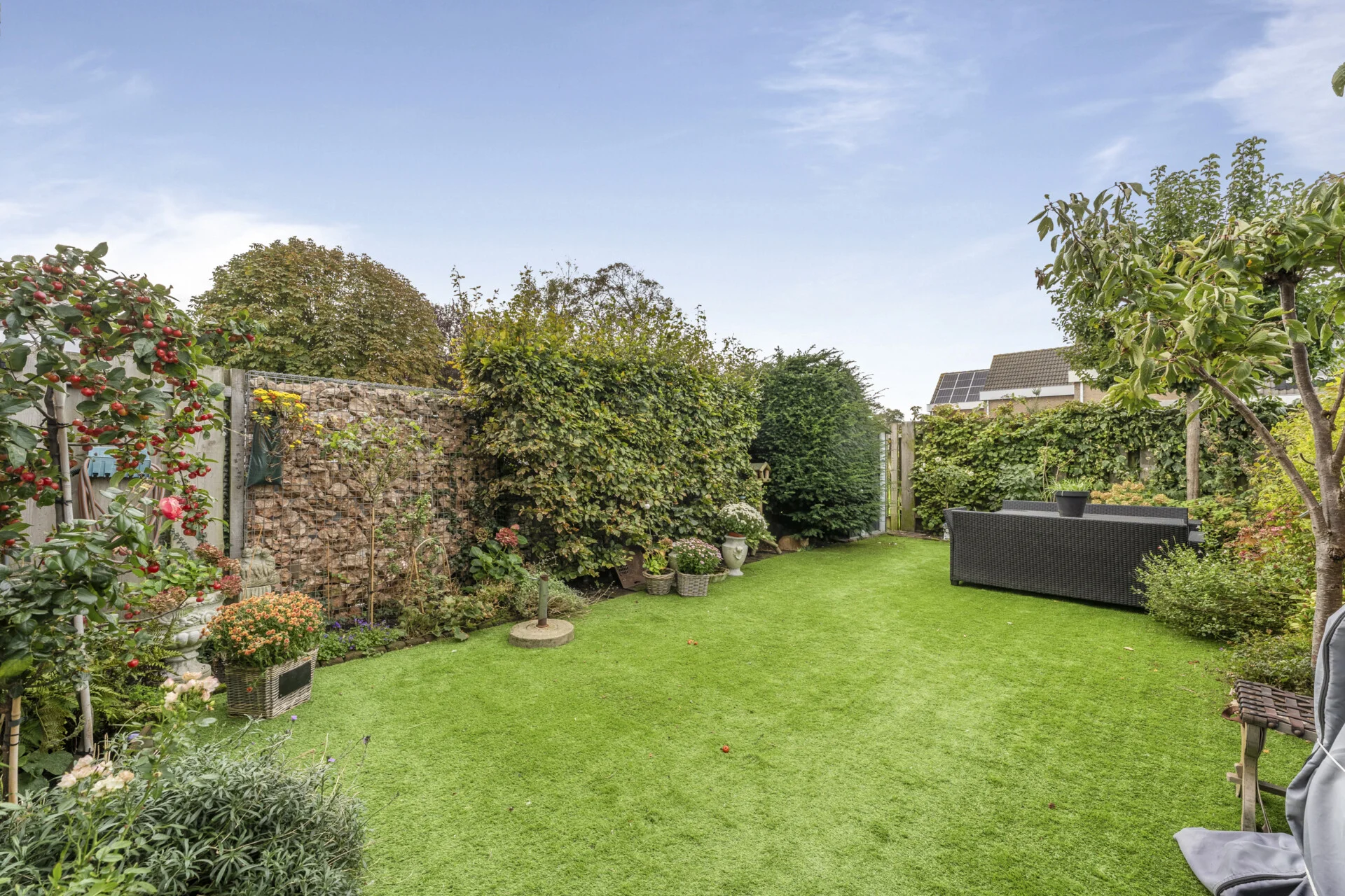 Aan de voorkant is er parkeerplek op eigen grond en staat een robuuste schuur voorzien van elektra en verlichting, heel praktisch allemaal. De achtertuin is keurig aangelegd, gunstig op het westen georiënteerd en dus ideaal voor de middag- en avondzon. Bovendien is de tuin opvallend privacyvol en, net als de woning, eenvoudig naar eigen smaak aan te passen: onder het kunstgras ligt sfeervolle bestrating, klaar om eventueel naar wens zichtbaar te maken. Zowel aan de voor- als achterkant van de woning zijn een buitenkraan en buitenelektra aanwezig, functioneel en prettig dus allemaal.