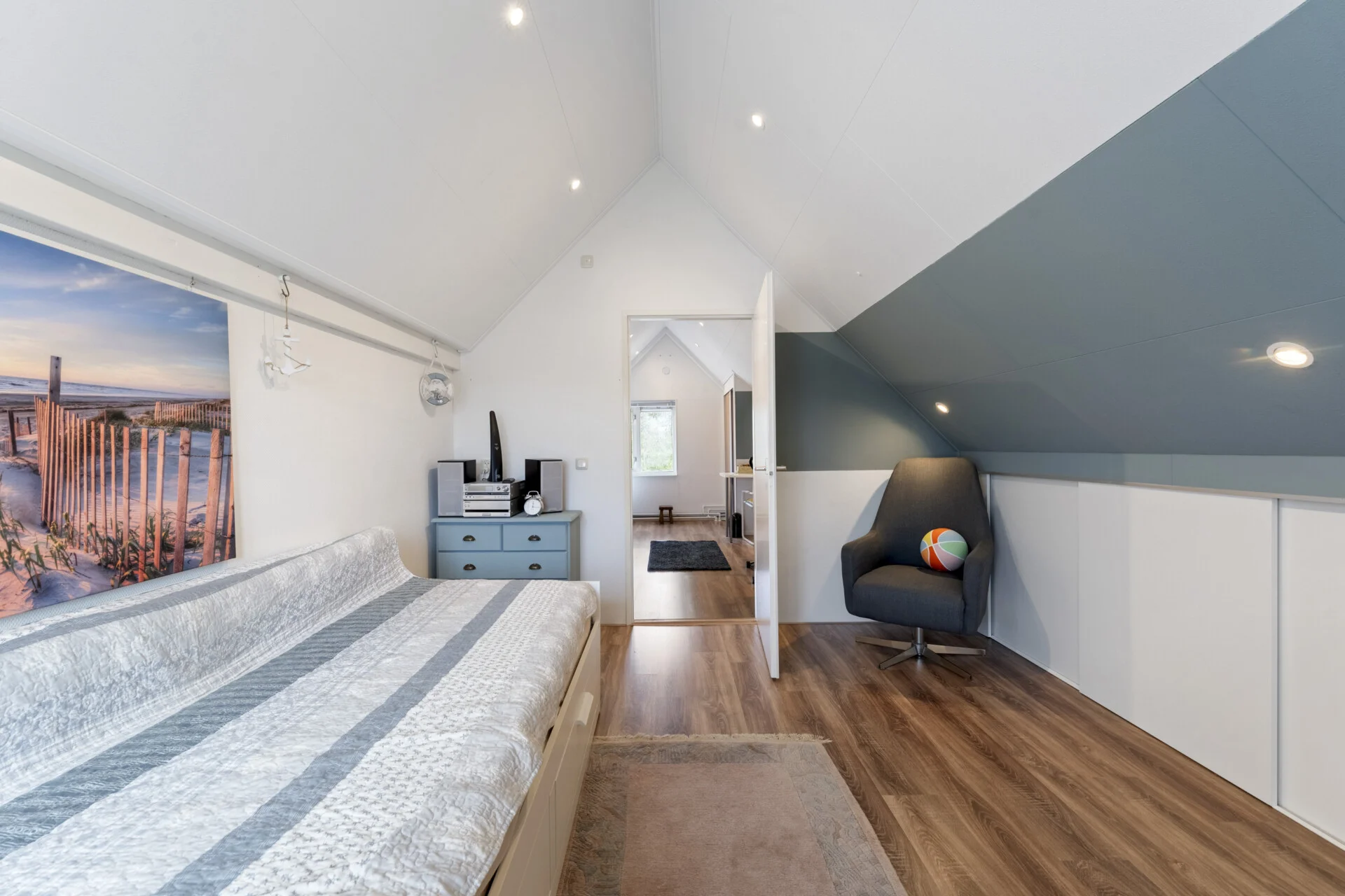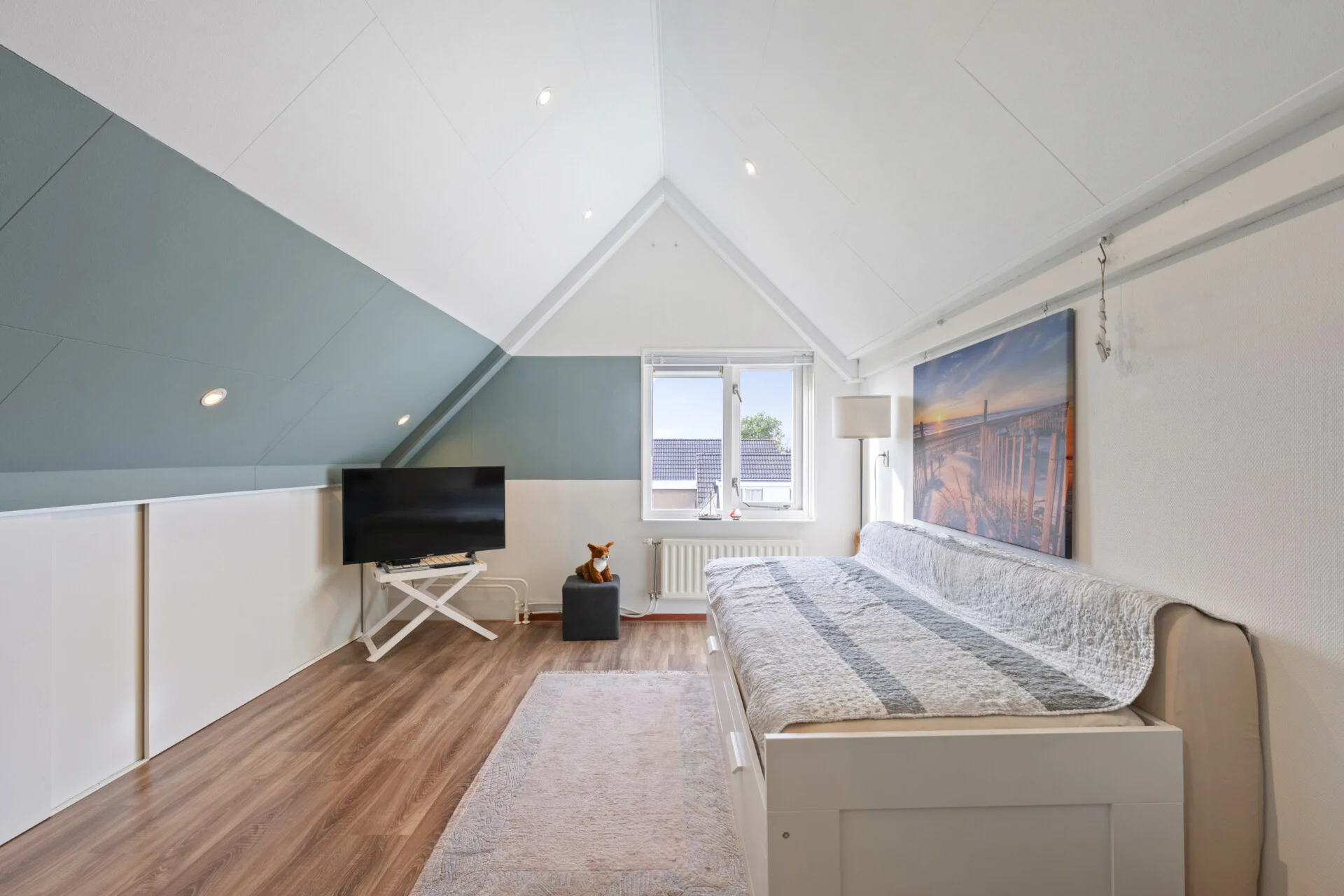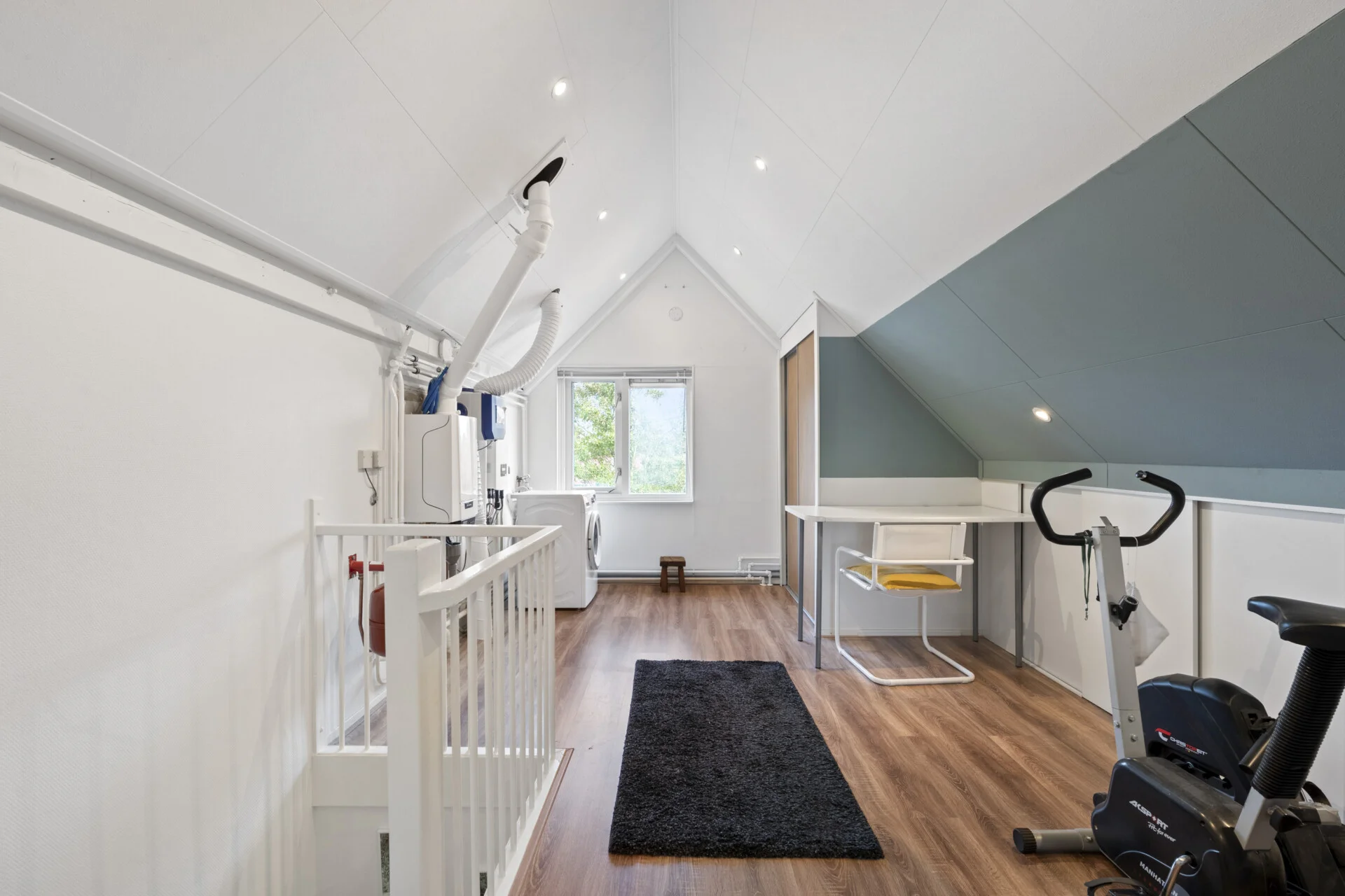 Via de vaste trap bereik je de voorzolder, een royale multifunctioneel inzetbare ruimte. Hier vind je de aansluitingen voor wasmachine en droger, evenals de cv-ketel. De eerdergenoemde vierde slaapkamer bevindt zich hier eveneens. De bijgesloten foto’s en plattegronden laten, vinden wij, goed zien hoe veelzijdig deze etage is.