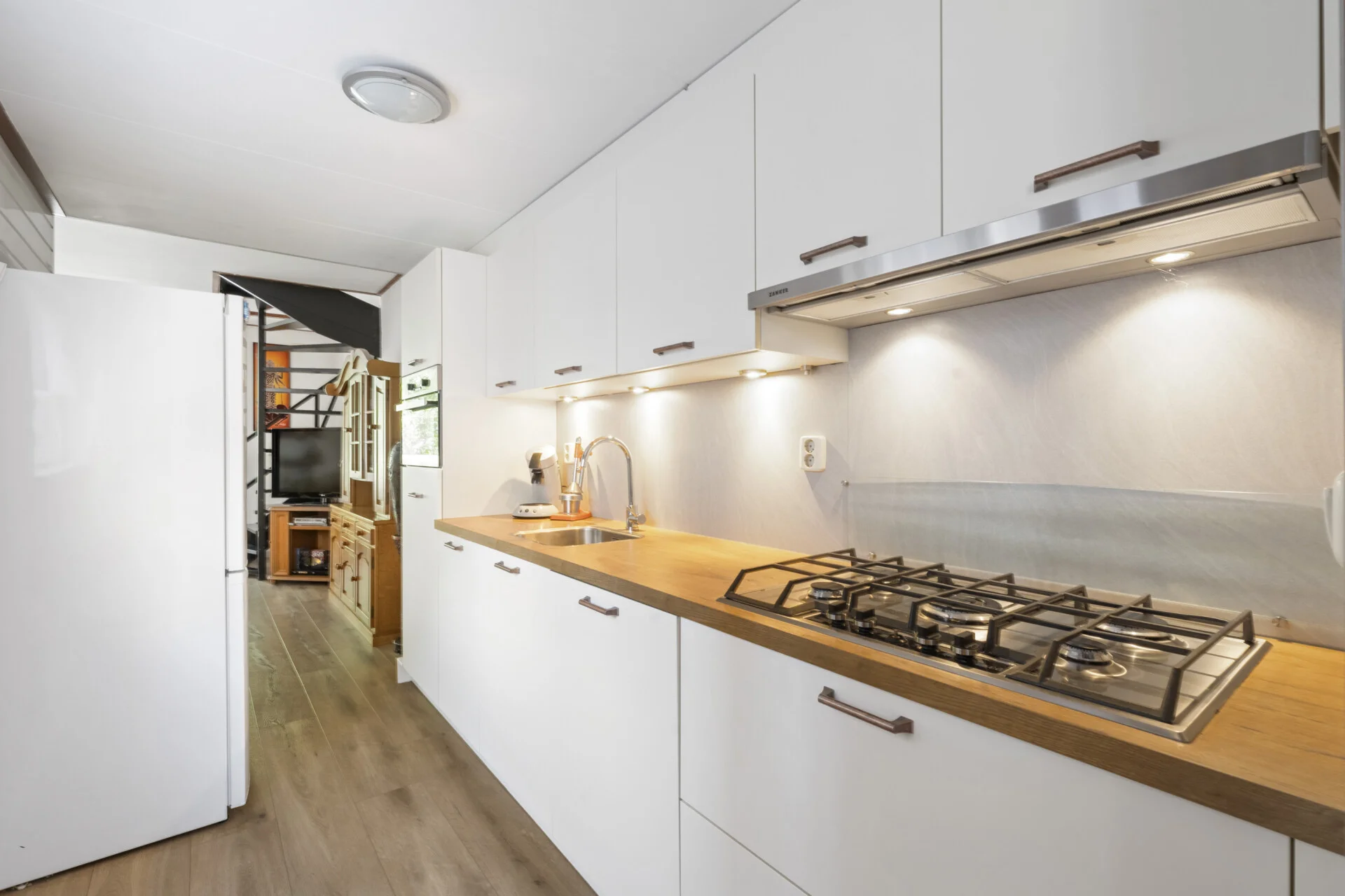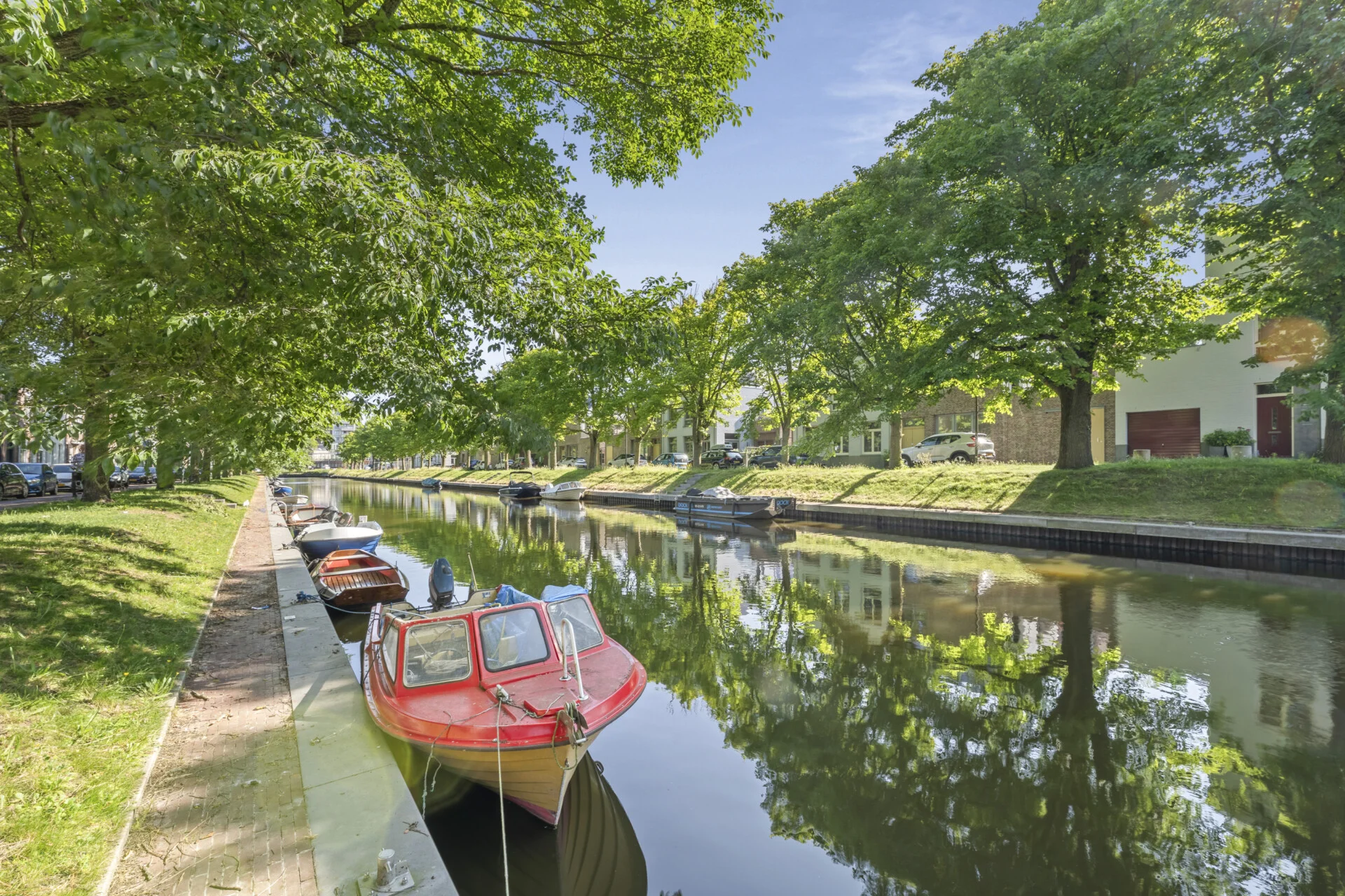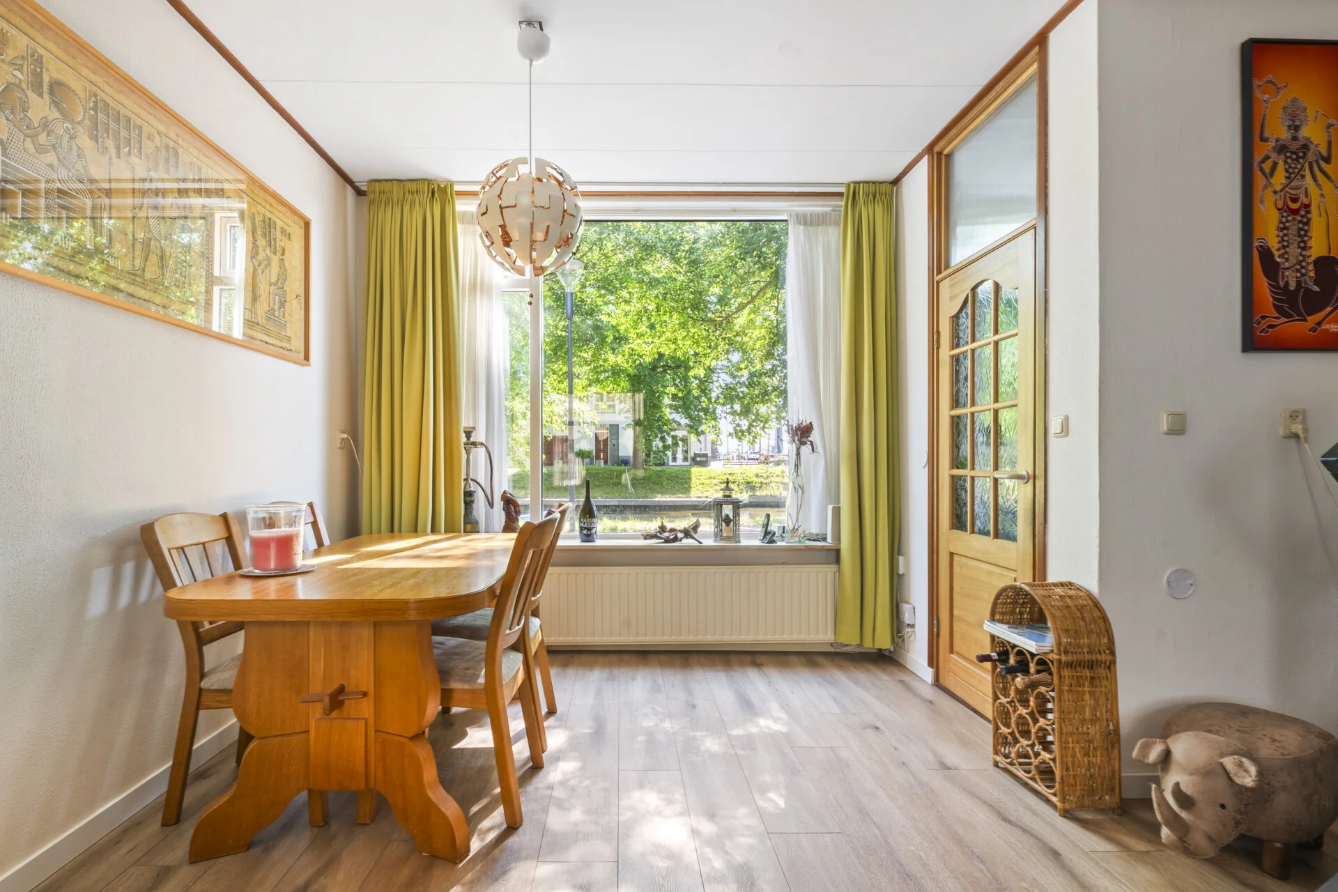 De doorzonwoonkamer zorgt voor een prettige lichtinval en biedt aan de voorzijde uitzicht over de gracht – met zelfs een glimp van het historische Willemsoord – terwijl je aan de achterzijde uitkijkt over de eigen buitenruimte. Ter hoogte van de achtergevel bevindt zich de keuken, die aansluit op een praktische passage met ruimte voor onder meer de wasmachine en het biedt toegang tot zowel de badkamer als de achtertuin.
