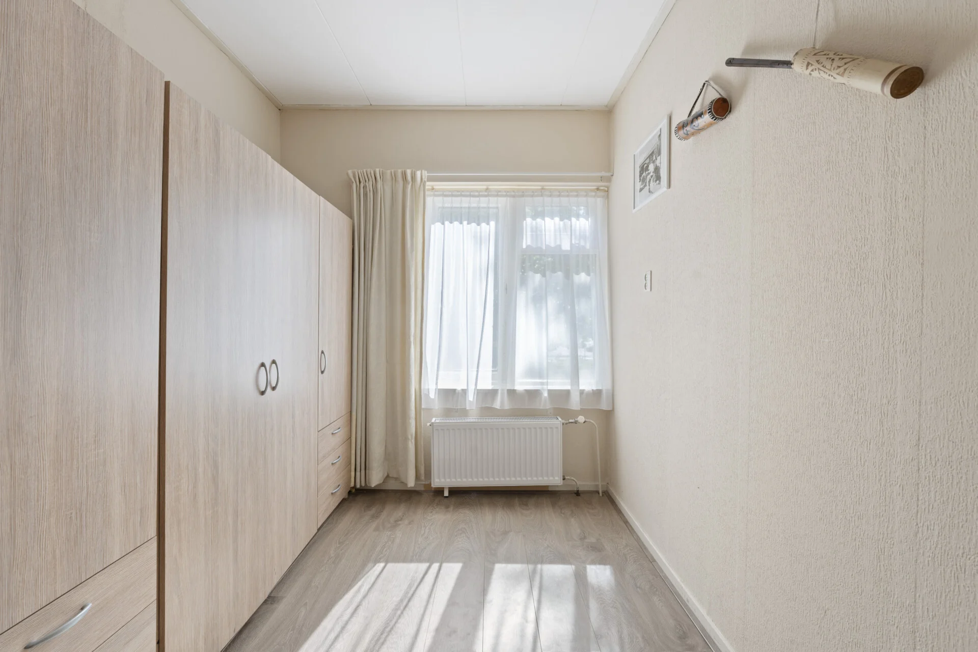 De achtertuin beschikt over een praktische berging en is ook bereikbaar via een achterom – handig als je met de fiets weg wilt. De afwerking van de woning is eenvoudig maar verzorgd, en dankzij de vlakke ondergronden zijn vloeren, wanden en plafonds relatief eenvoudig naar eigen smaak en stijl te personaliseren.